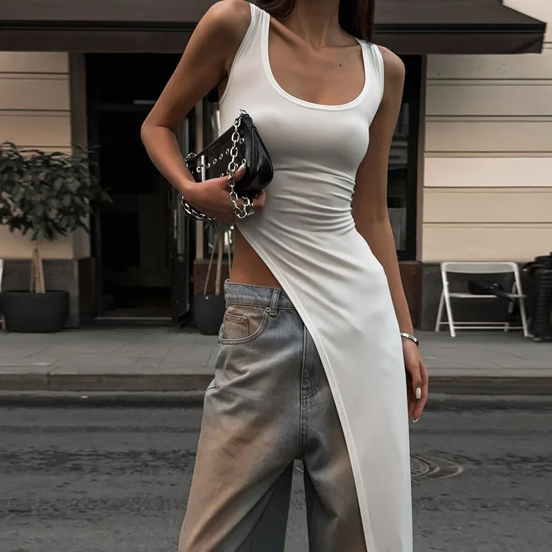 Elevate your fashion game with our Sleeveless Asymmetric Long Top.